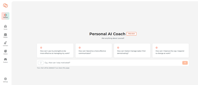 Our Personal & Colleague AI coaches are powered by Thom AI and deliver tailored support, whether you are using the platform as a non-manager (colleague) or a manager. These new features enhance self-awareness, improve collaboration with colleagues, and strengthen personal development and team growth.