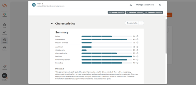 The summary provides a complete picture of the characteristic profile of a candidate and includes additional information to help with decision-making. It is conveniently available to download as a PDF.