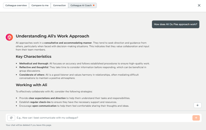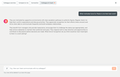 You can also ask the 'Colleague AI Coach' more about a colleague.