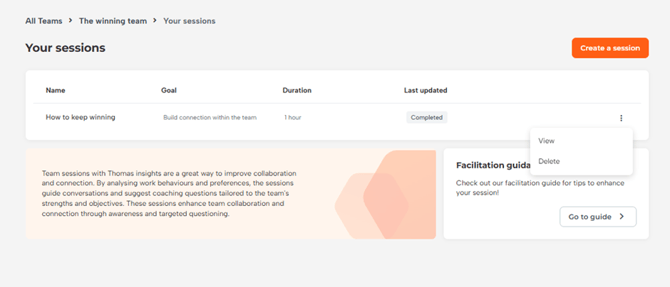 We have created an easy way to harness team insights and run a team session. Whether you are a manager, team lead, or individual contributor, you can run a session. By clicking on 'Create a session', the system guides you through the process.