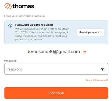 If you still need help after following the steps above, you can contact Thomas support and mention that this is a first sign-in issue after the March 2026 migration. We will get things sorted for you as soon as possible.