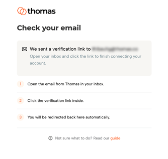 What changed: The first time you sign in after March 2026, you will need to complete one additional step to verify your identity and link your login details to your existing Thomas account; after that, signing in works as normal: