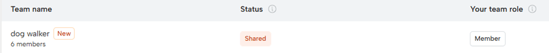 - Status: Status indicates whether the team is 'shared' or 'private'.
