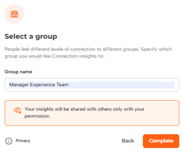 Note: If you want to initiate measuring Connection with a specific group for personal learning or to share with select individuals, follow these steps. Alternatively, your manager may invite you to complete this measure for team or individual interventions and share your insights with them.
