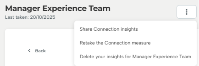 Once you have completed the measure, you can share your results by clicking on the three dots and selecting 'Share Connection insights'