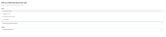 It is important to note that the questions help define the learning environment associated with the role. Each set of options represents different requirements and is not necessarily ranked on a scale from less important to more important for the role.