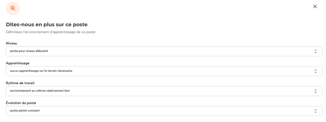 Il est important de noter que ces questions aident à définir l'environnement d'apprentissage associé au poste. Chaque option représente des exigences différentes et n'est pas nécessairement classée par ordre d'importance.