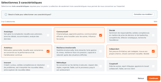 Sélectionnez les 3 caractéristiques les plus importantes pour ce poste.