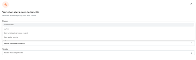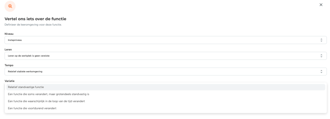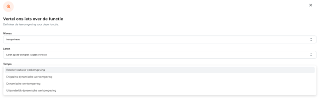 Het is belangrijk om je ervan bewust te zijn dat de vragen helpen bij het definiëren van de leeromgeving die bij de functie hoort. Elke set opties vertegenwoordigt verschillende vereisten en ze zijn niet noodzakelijk gerangschikt op een schaal van minder belangrijk tot belangrijker voor de functie.